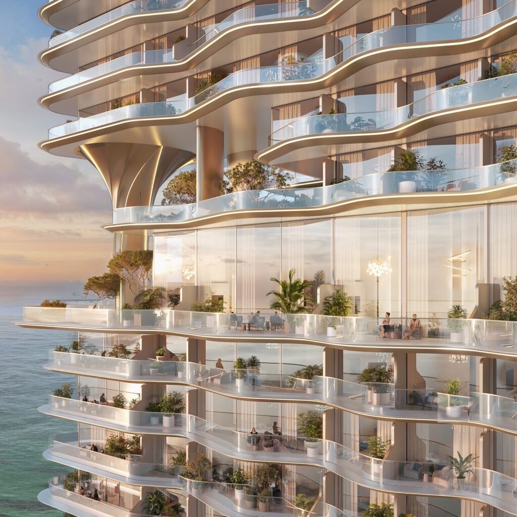 Elegante Wasserfront-Residenzen eines deutschen Entwicklers in der Dubai Maritime City, bestehend aus vollständig möblierten Studios sowie Apartments mit 1, 1.5, 2.5 und 3.5 Schlafzimmern. Jedes Apartment besticht durch hochwertige Materialien wie Marmor, Travertin und geriffeltes Glas, kombiniert mit goldmatten Akzenten und luxuriösen Innenräumen. Die Bewohner genießen einen atemberaubenden Panoramablick auf das Meer und mehr als 40 Resort-ähnliche Annehmlichkeiten, die einen modernen und komfortablen Lebensstil bieten.